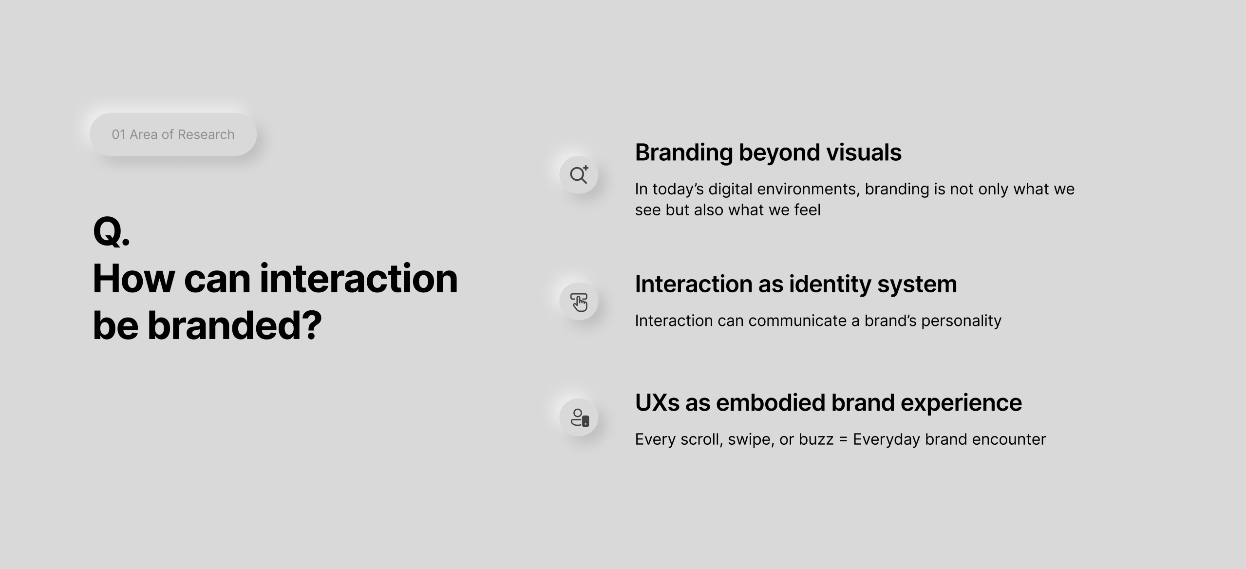 This week, we got a chance to present our project ideas and research we have done so far. My central research question was "How Can Interaction Be Branded?". Andreas asked me what this actually means. And honestly? I didn't have a great answer. It sounded good in my head, but when pressed to explain it concretely, I realized I was being vague. "Interaction can be branded" is abstract theorizing. I need concrete examples and measurable qualities.