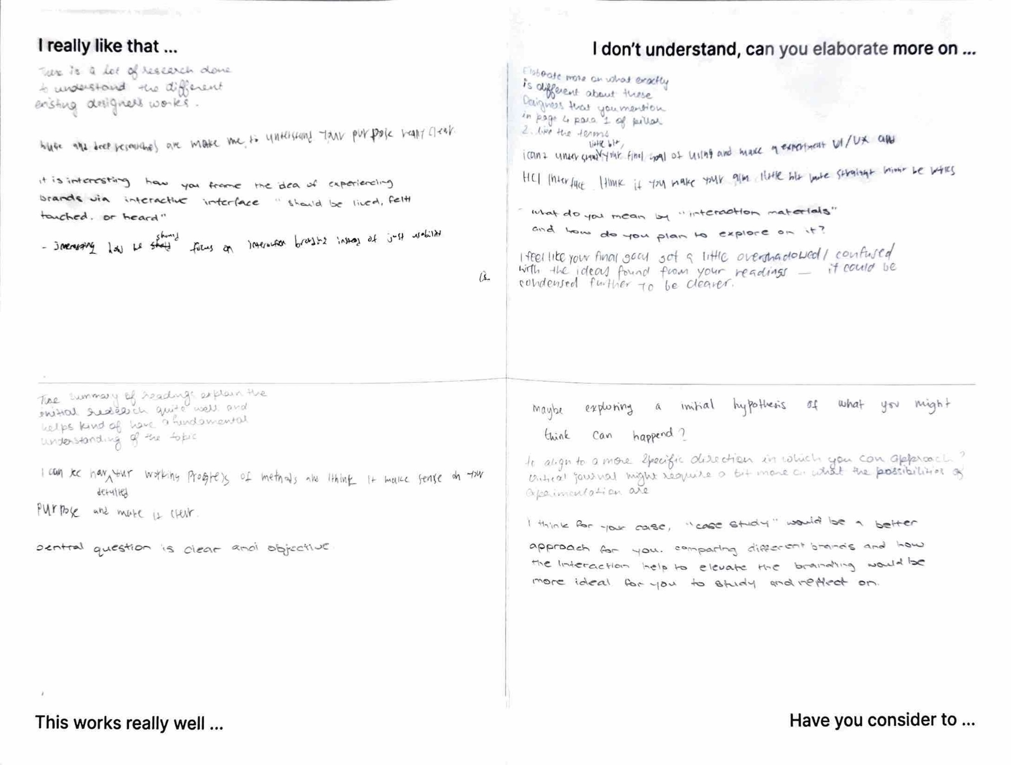 The Apple packaging example I created for my moodboard worked well. People understood it immediately. The precisely calibrated resistance when opening an Apple box, timed to feel luxurious rather than cheap or frustrating. This translates the abstract concept of "interaction carrying brand identity" into something tangible. I'm integrating this into my introduction and creating prints of it for my workspace.